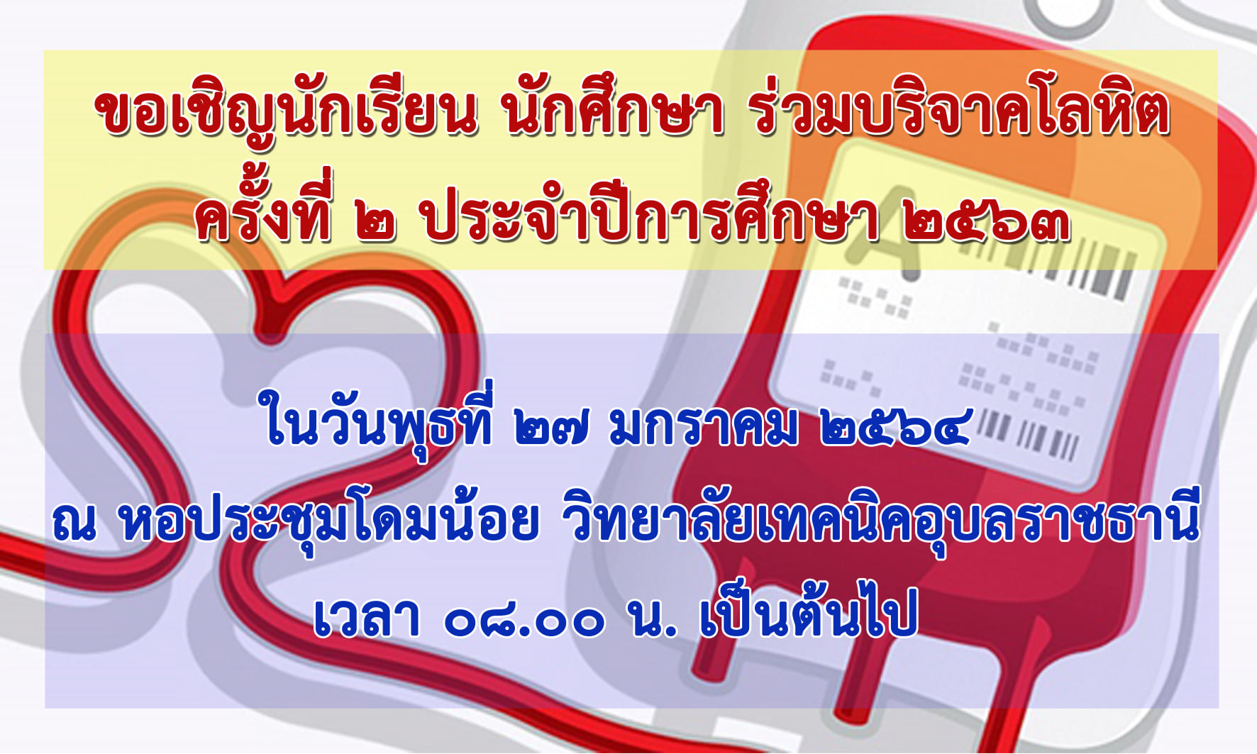 ขอเชิญนักเรียน นักศึกษา ร่วมบริจาคโลหิต ครั้งที่ 2 ประจำปีการศึกษา 2563