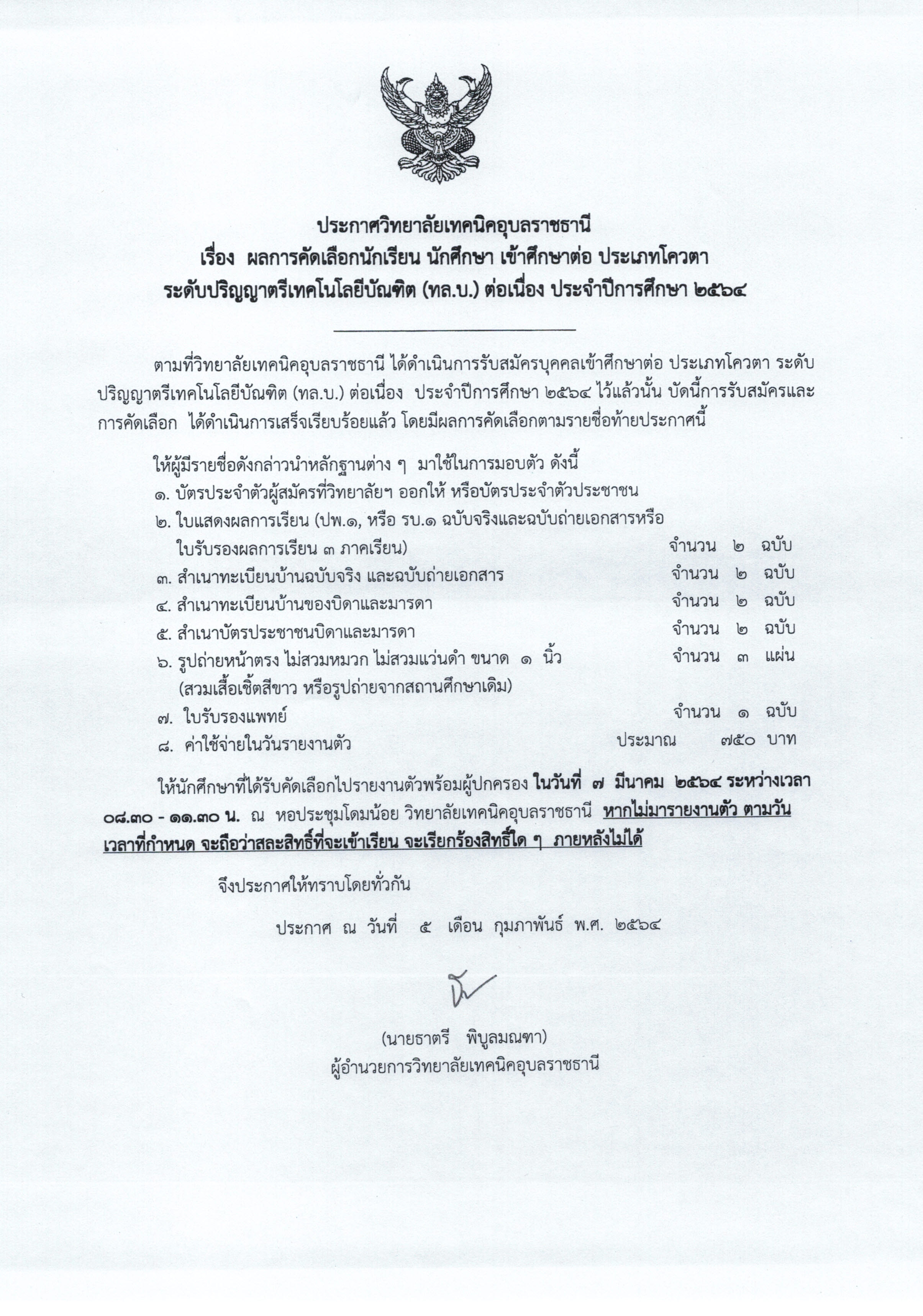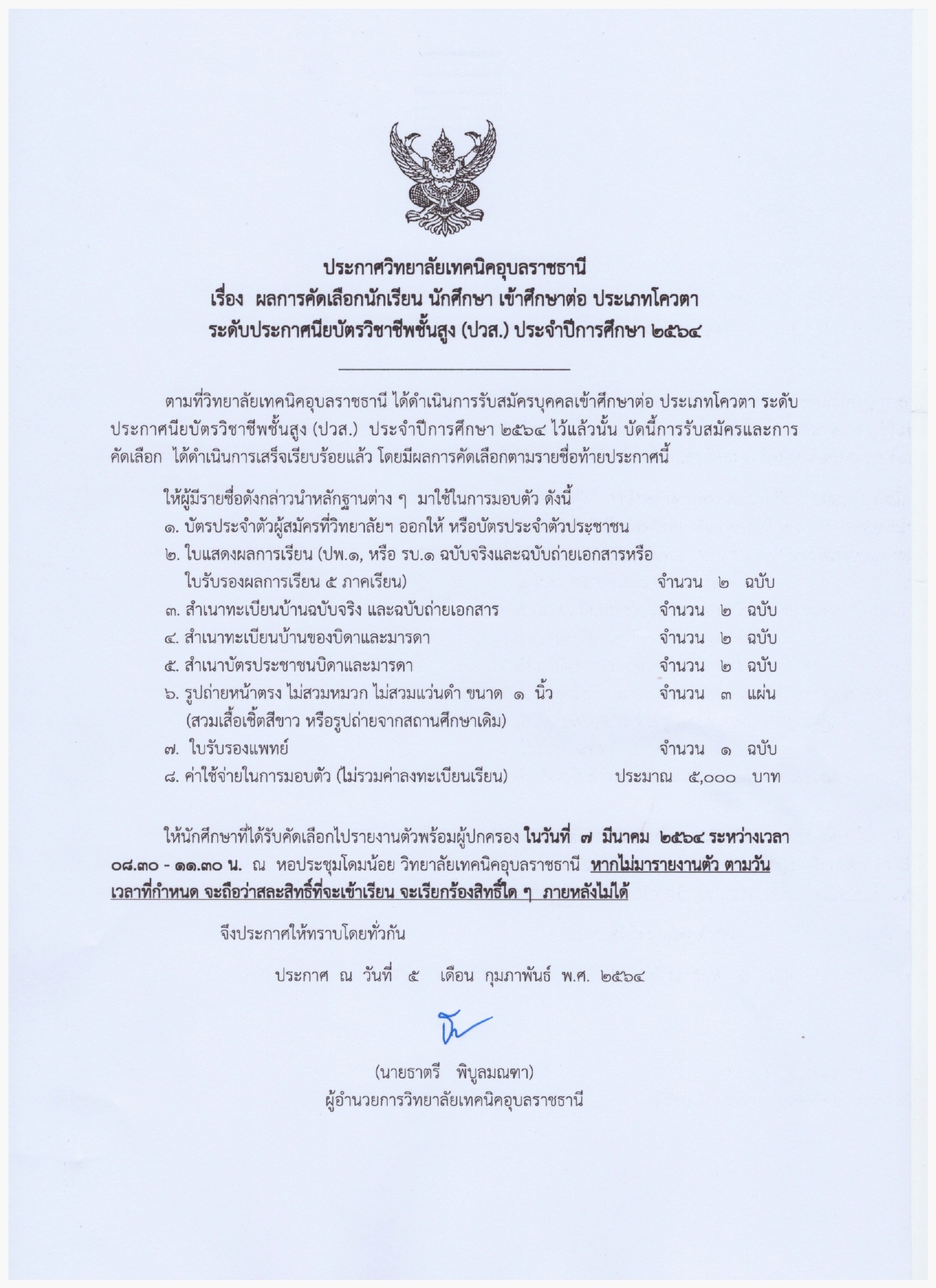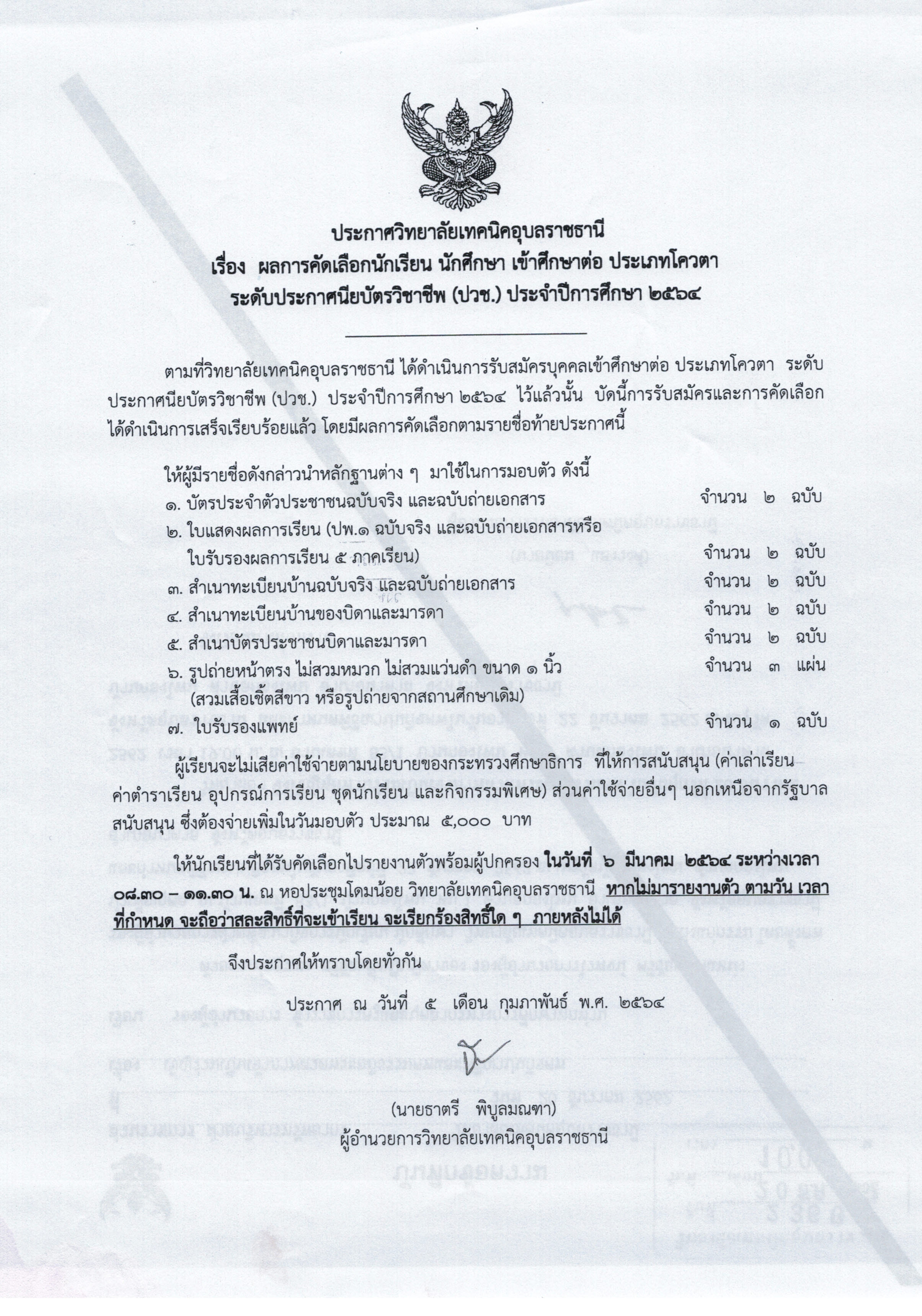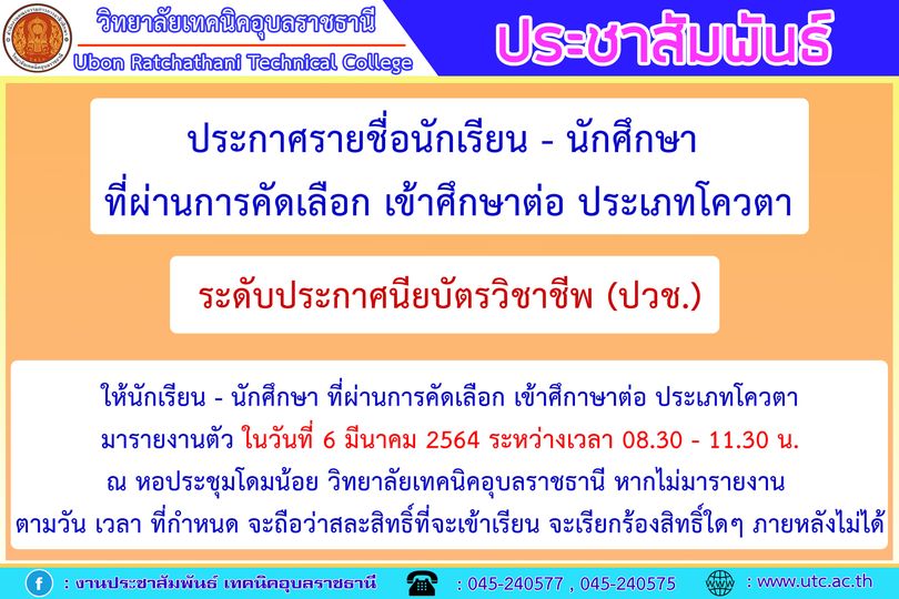 โครงการลดปัญหาการออกกลางคันของนักเรียน นักศึกษาอาชีวศึกษา วิทยาลัยเทคนิคอุบลราชธานี ประจำปีการศึกษา ๒๕๖๒