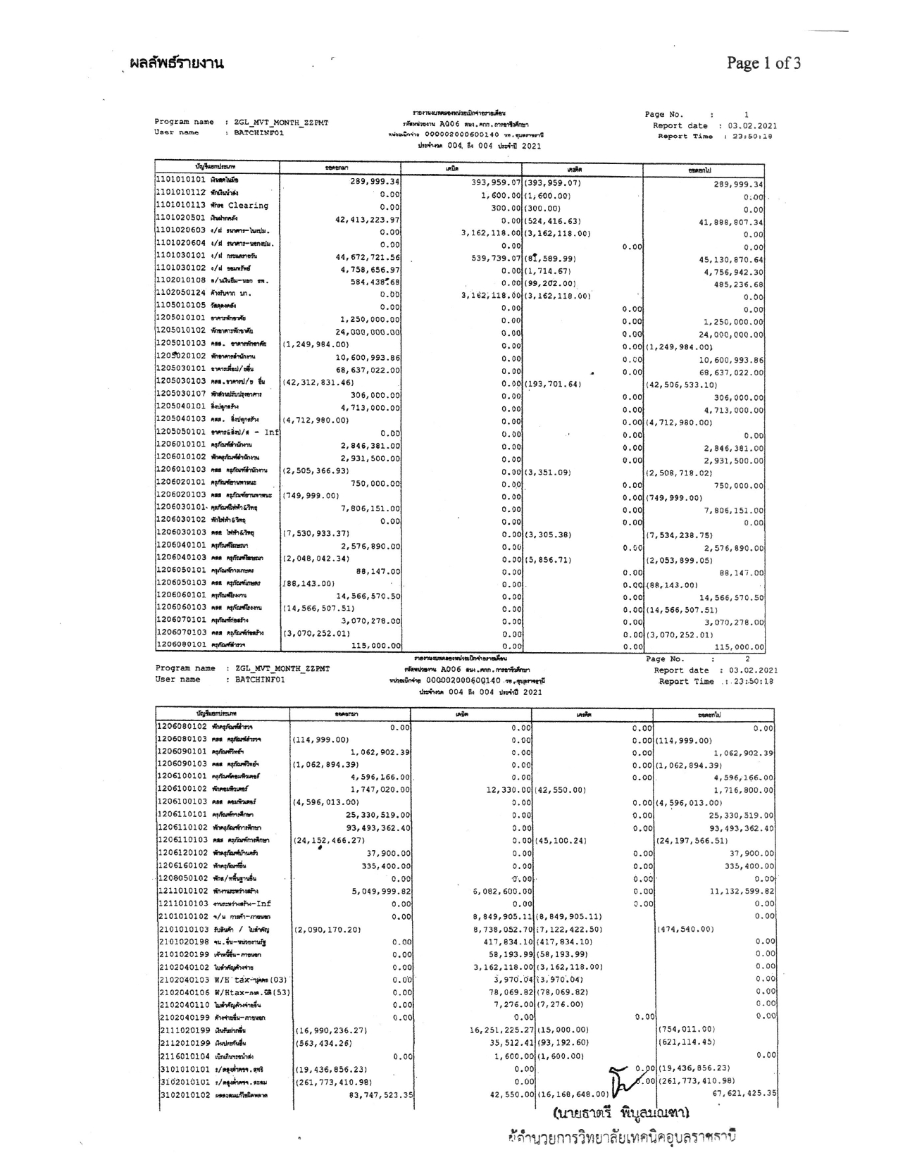 รายงานงบทดลองประจำเดือน กุมภาพันธ์ 2564