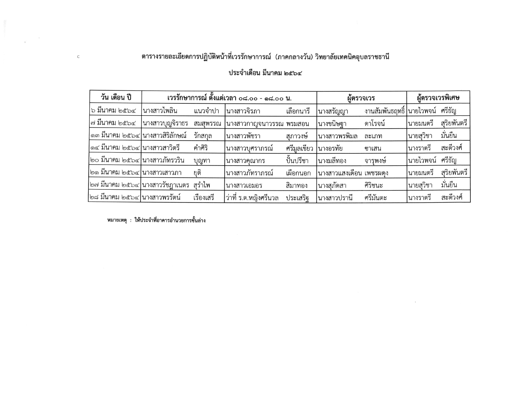 แต่งตั้งบุคคลากรในสังกัดปฏิบัติหน้าที่เวรรักษาการณ์ ภาคกลางคืน ประจำเดือนมีนาคม 2565