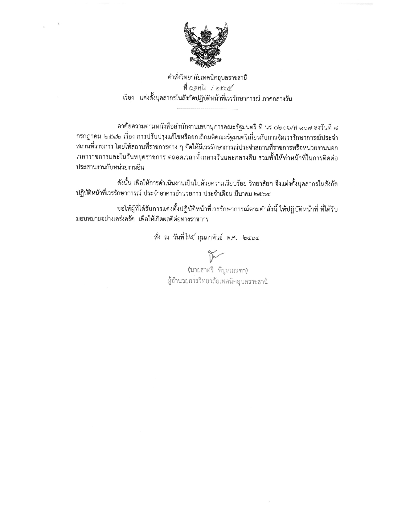 คำสั่งวิทยาลัยเทคนิคอุบลราชธานี เรื่อง แต่งตั้งครูที่ปรึกษา ประจำปีการศึกษ 2564 (เพิ่มเติม)