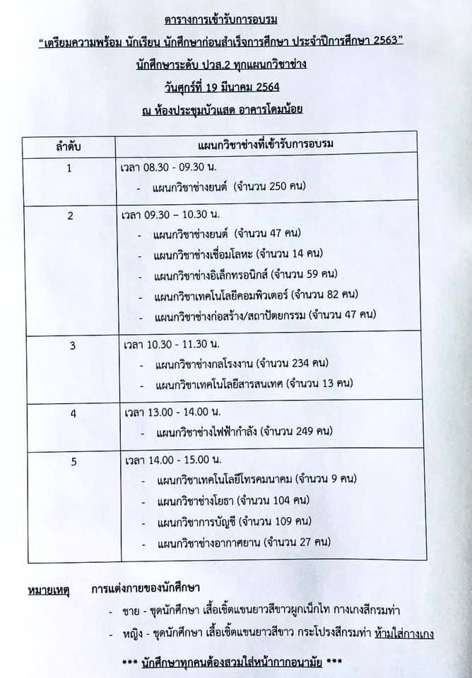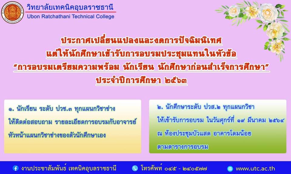 -ประกาศการเปลี่ยนแปลงและงดการปัจฉิมนิเทศ