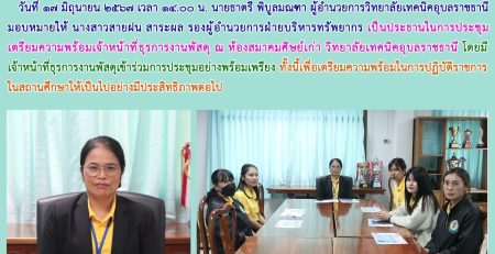 FacebookTwitterLineวันที่ 13 พฤษภาคม 2568 เวลา 10.00 น. นายธาตรี พิบูลมณฑา ผู้อำนวยการวิทยาลัยเทคนิคอุบลราชธานี ได้มอบหมายให้ นายสุวิชา มั่นยืน รองผู้อำนวยการฝ่ายวิชาการ พร้อมด้วย นางพนิดา องค์สวัสดิ์ หัวหน้างานวัดผล (เพิ่มเติม…) FacebookTwitterLine read more