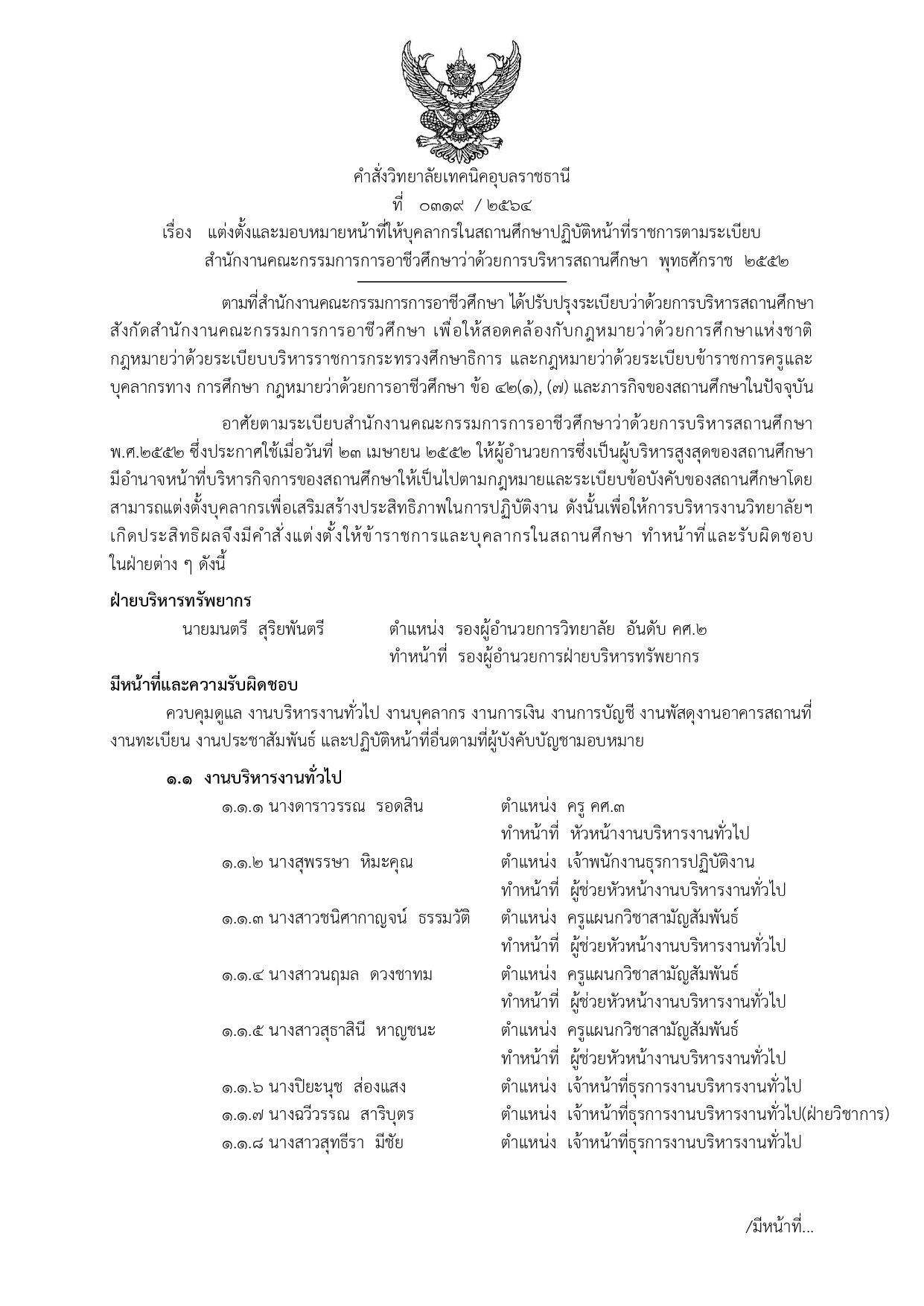 คำสั่งวิทยาลัยเทคนิคอุบลราชธานี 2566