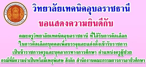 วิทยาลัยเทคนิคอุบลฯ ขอแสดงความยินดี กับคุณครู 20 ท่าน