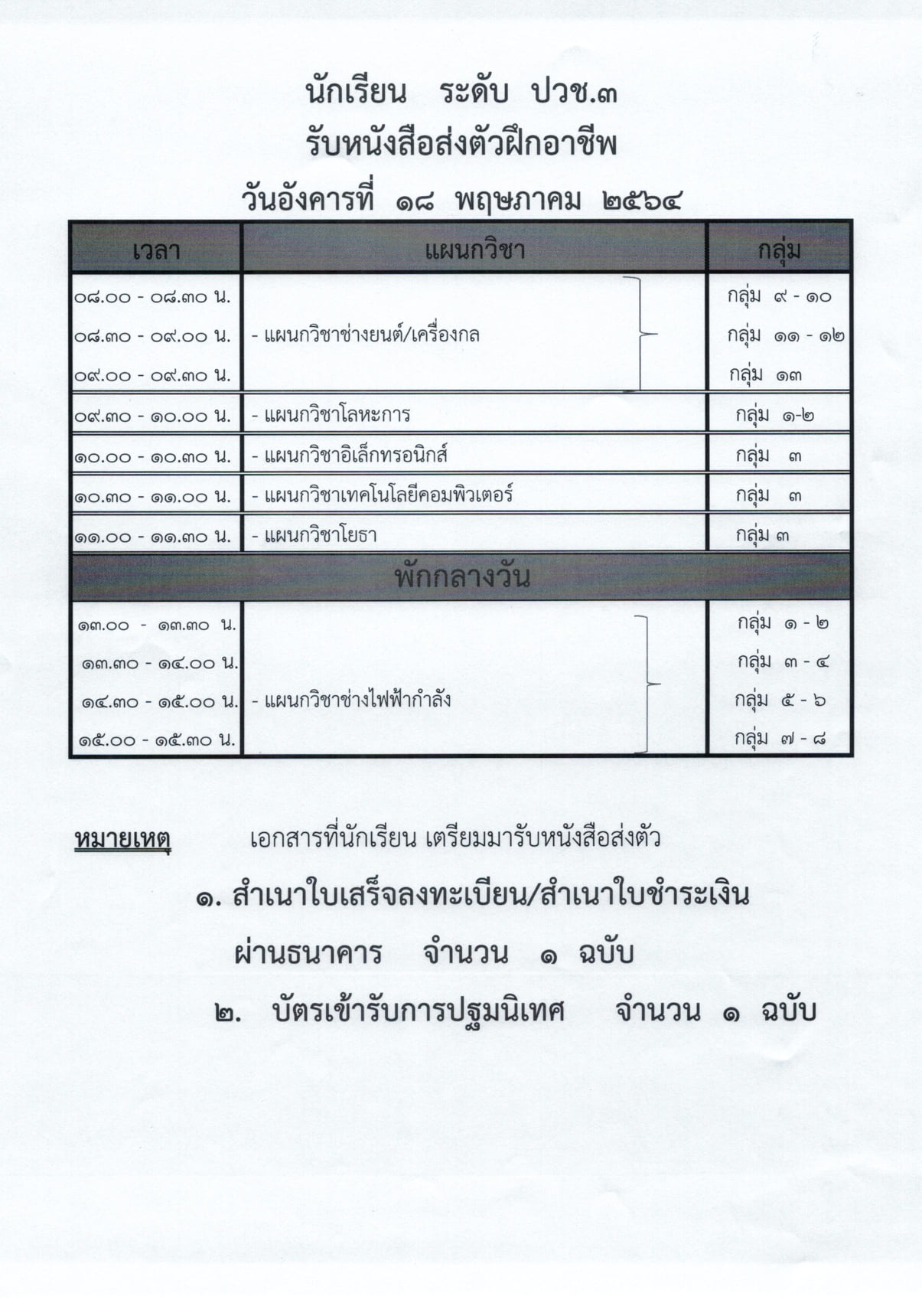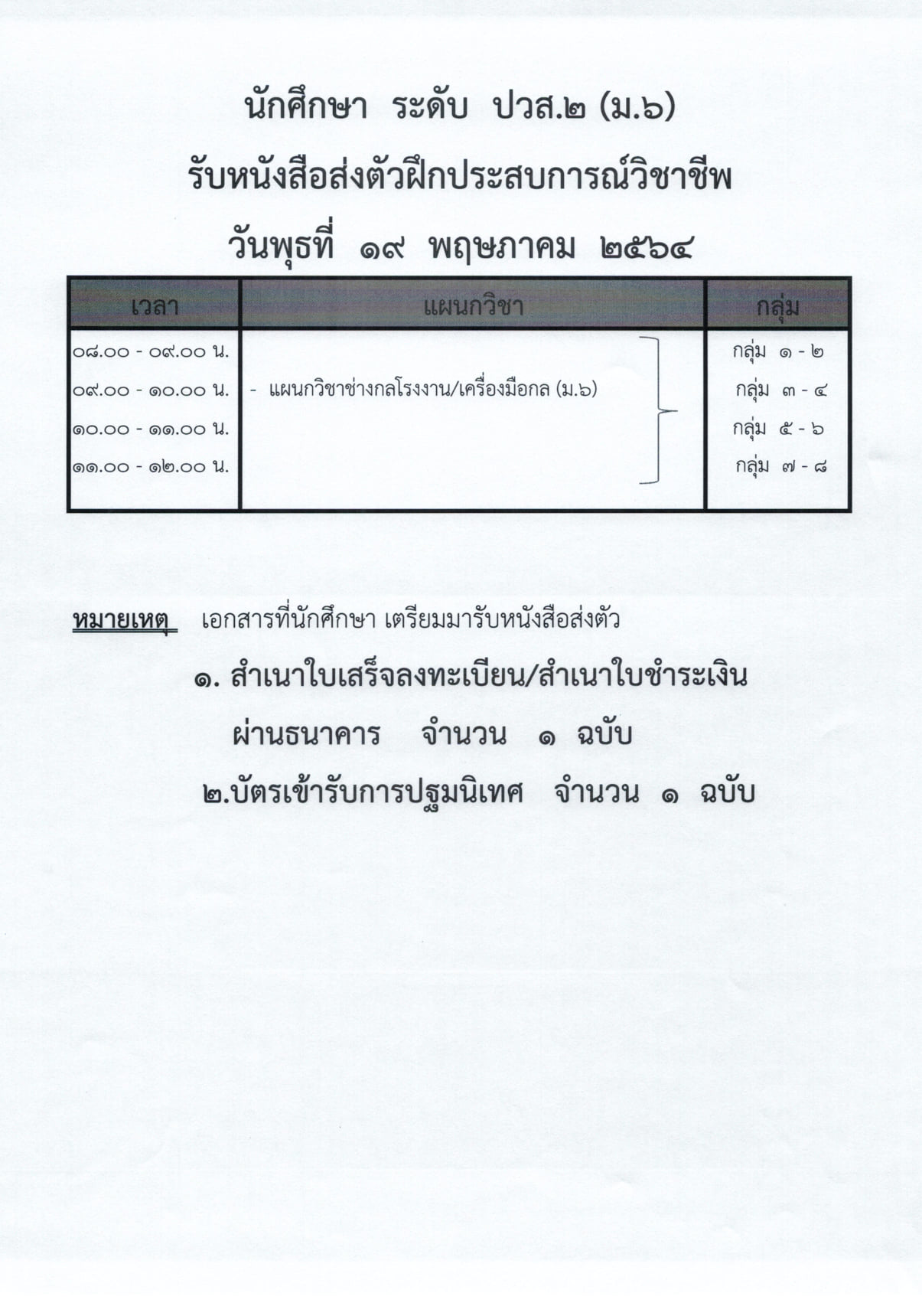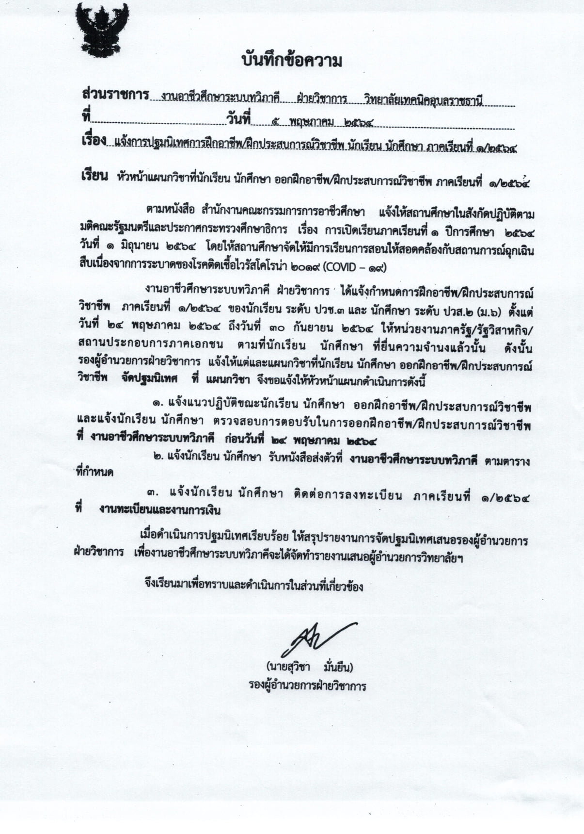 ประกาศแจ้งการปฐมนิเทศการฝึกอาชีพ/ฝึกประสบการณ์วิชาชีพ นักเรีนรนักศึกษา ภาคเรียนที่ 1/2564