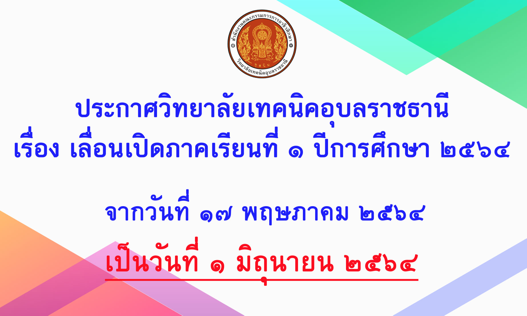 ประกาศ วิทยาลัยเทคนิคอุบลราชธานี เรื่อง เลื่อนการเปิดภาคเรียนที่ ๑ ปีการศึกษา ๒๕๖๔