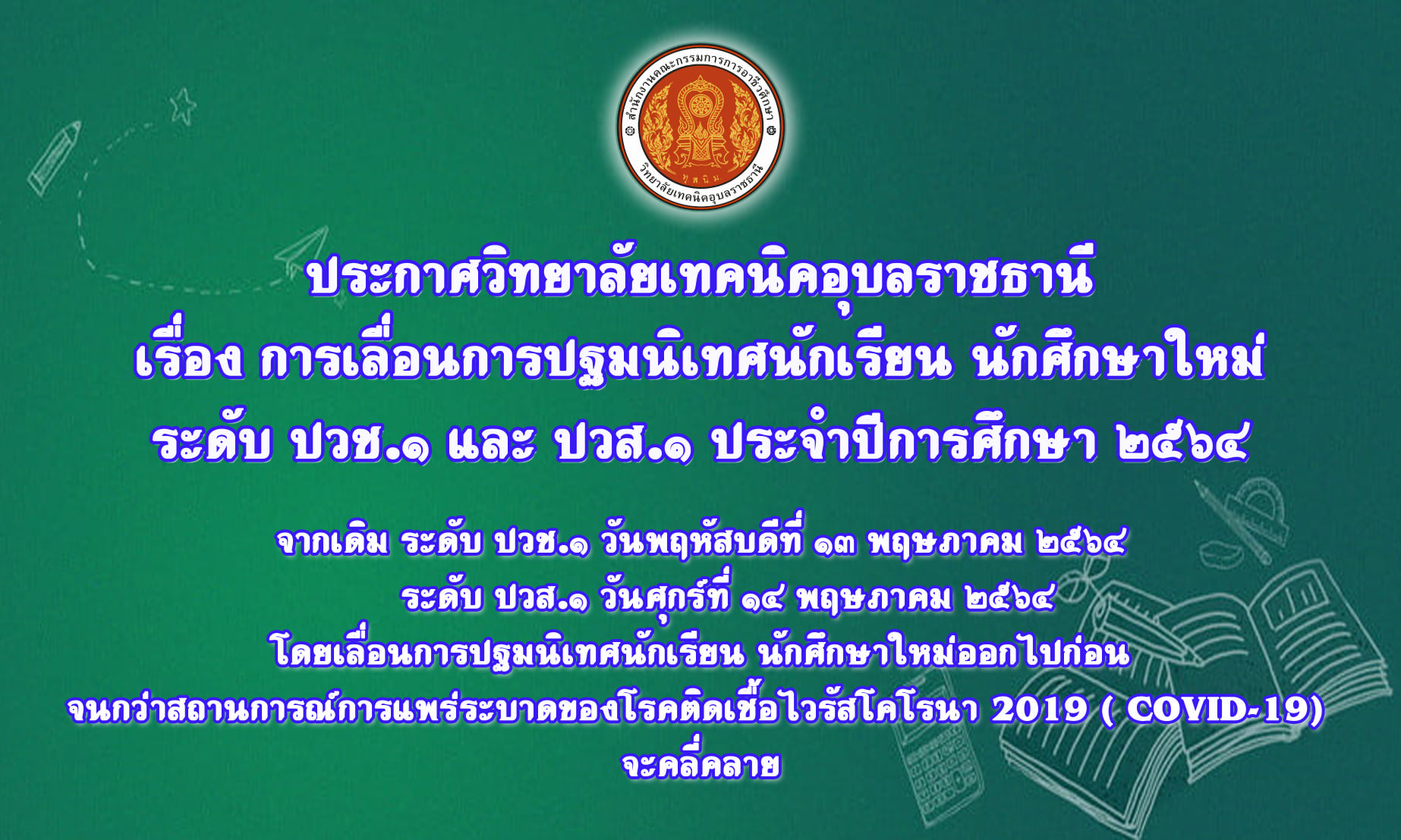 ประกาศเลื่อนการปฐมนิเทศนักเรียน นักศึกษาใหม่ ระดับ ปวช.๑ และ ปวส.๑ ประจำปีการศึกษา ๒๕๖๔