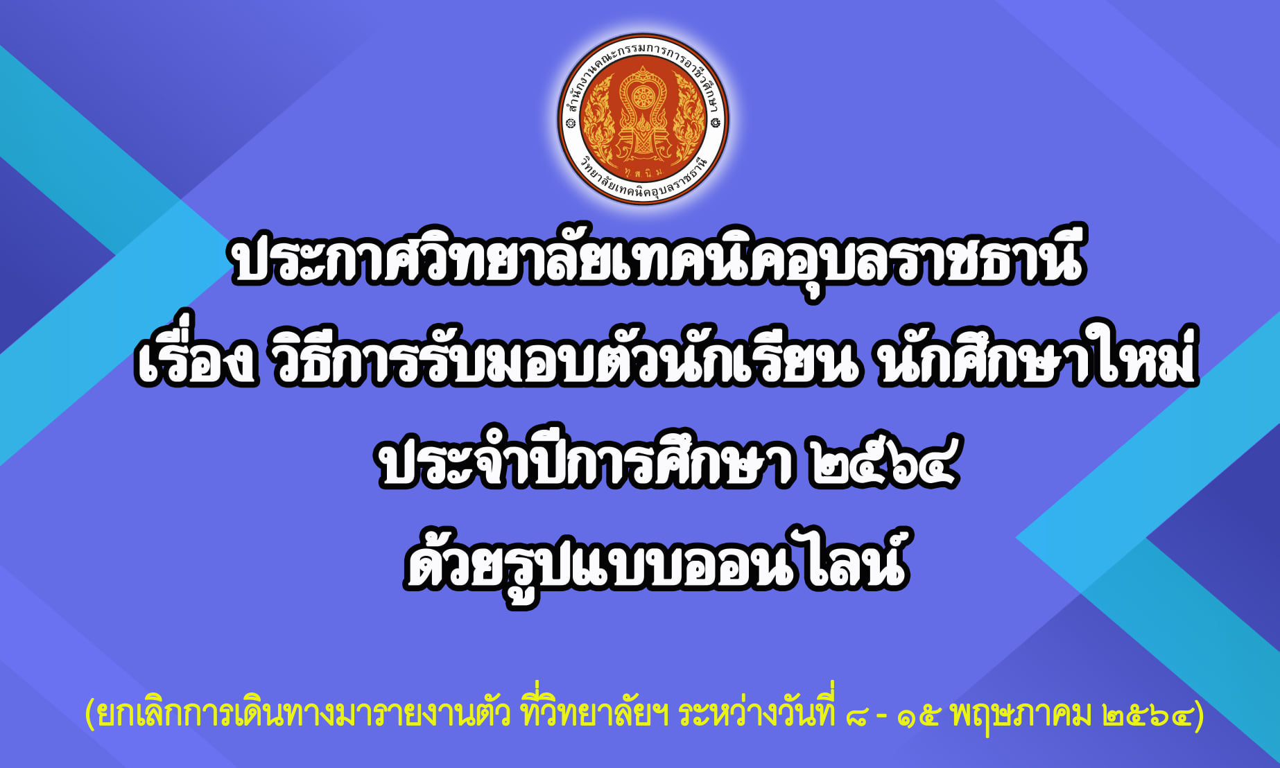 ประกาศวิทยาลัยเทคนิคอุบลราชธานี เรื่อง วิธีการรับมอบตัวนักเรียน นักศึกษาใหม่