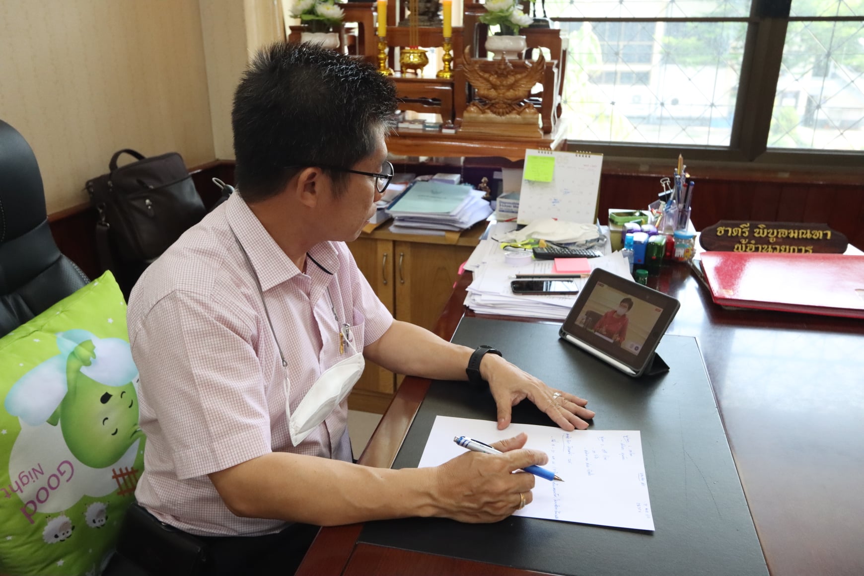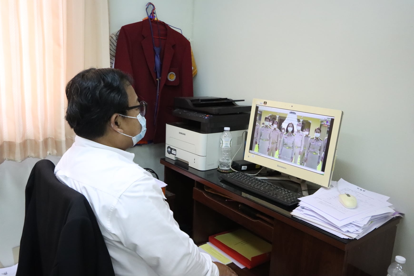ผู้อำนวยการ พร้อมด้วยรองผู้อำนวยการ ร่วมรับชมการถ่ายทอดสด การแถลงข่าวการเตรียมความพร้อม การเปิดภาคเรียน