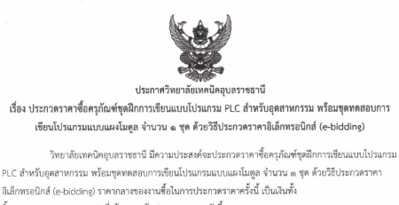 ประกาศประกวดราคาซื้อครุภัณฑ์ห้องเรียนและปฏิบัติการห้องเรียนอัตโนมัติ
