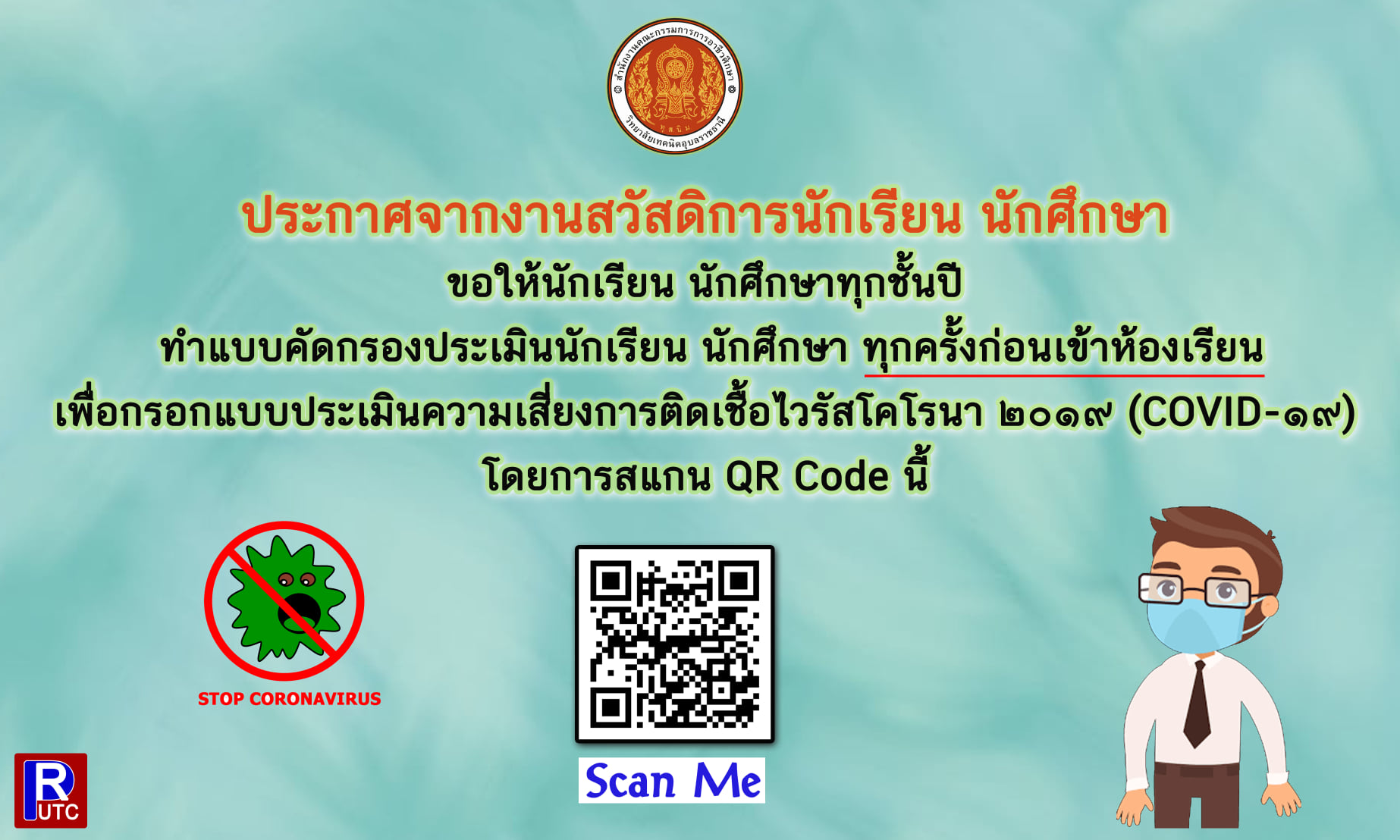 ทุกครั้งก่อนเข้าห้องเรียน เพื่อกรอกแบบประเมินความเสี่ยงการติดเชื้อไวรัสโคโรนา ๒๐๑๙ (COVID-๑๙)