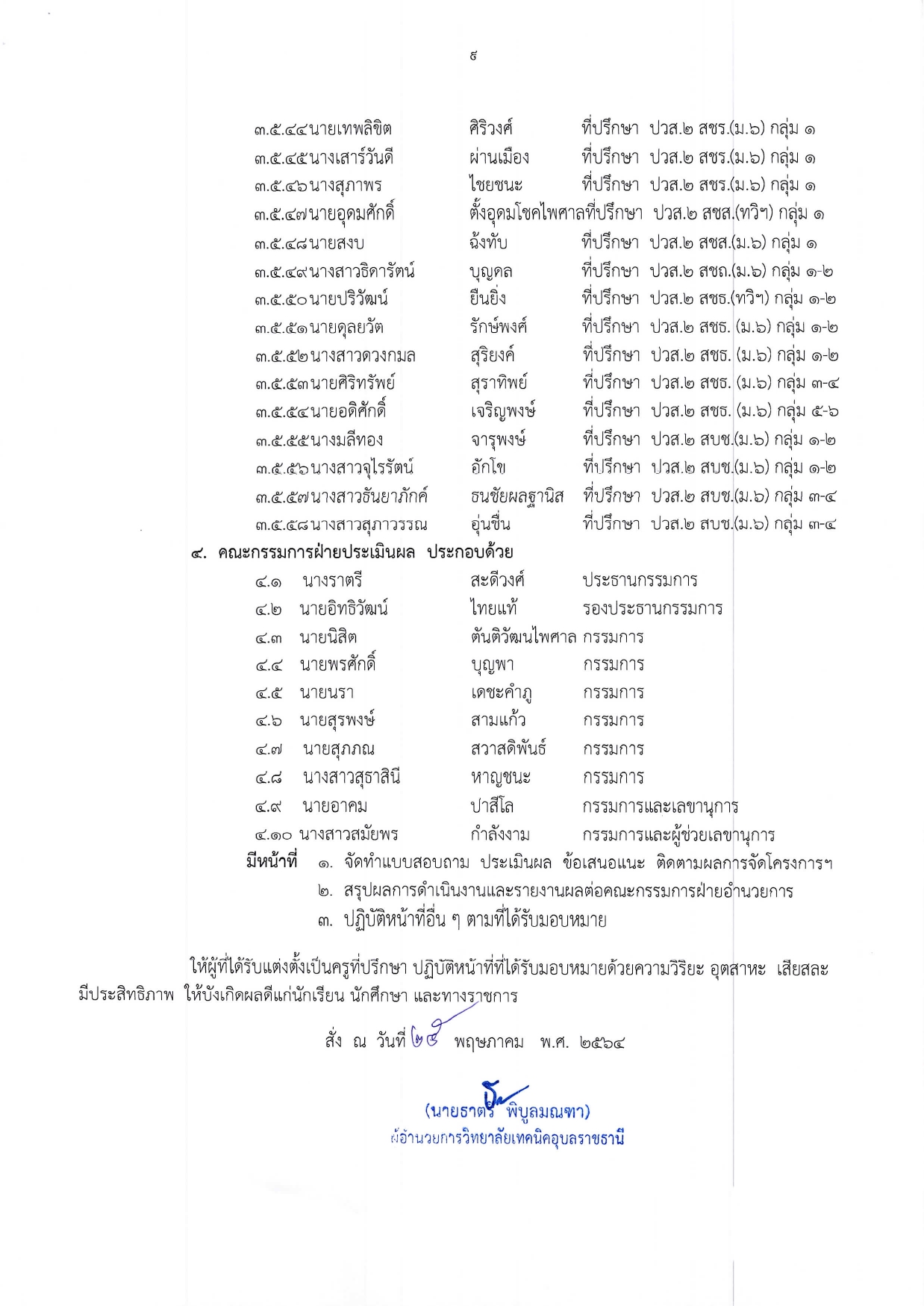 แต่งตั้งบุคคลากรในสังกัดปฏิบัติหน้าที่เวรรักษาการณ์ ภาคกลางวัน ประจำเดือนตุลาคม 2565