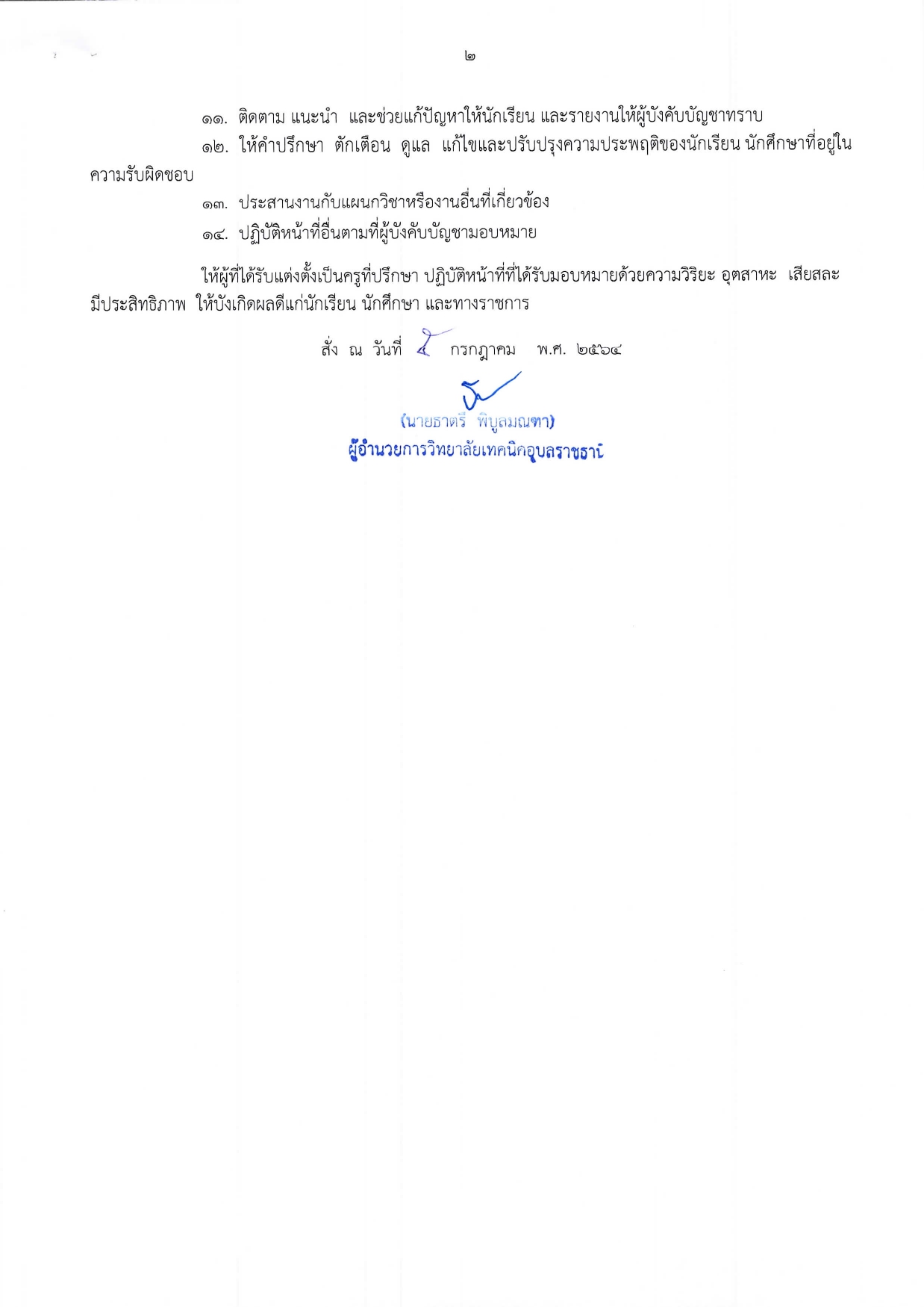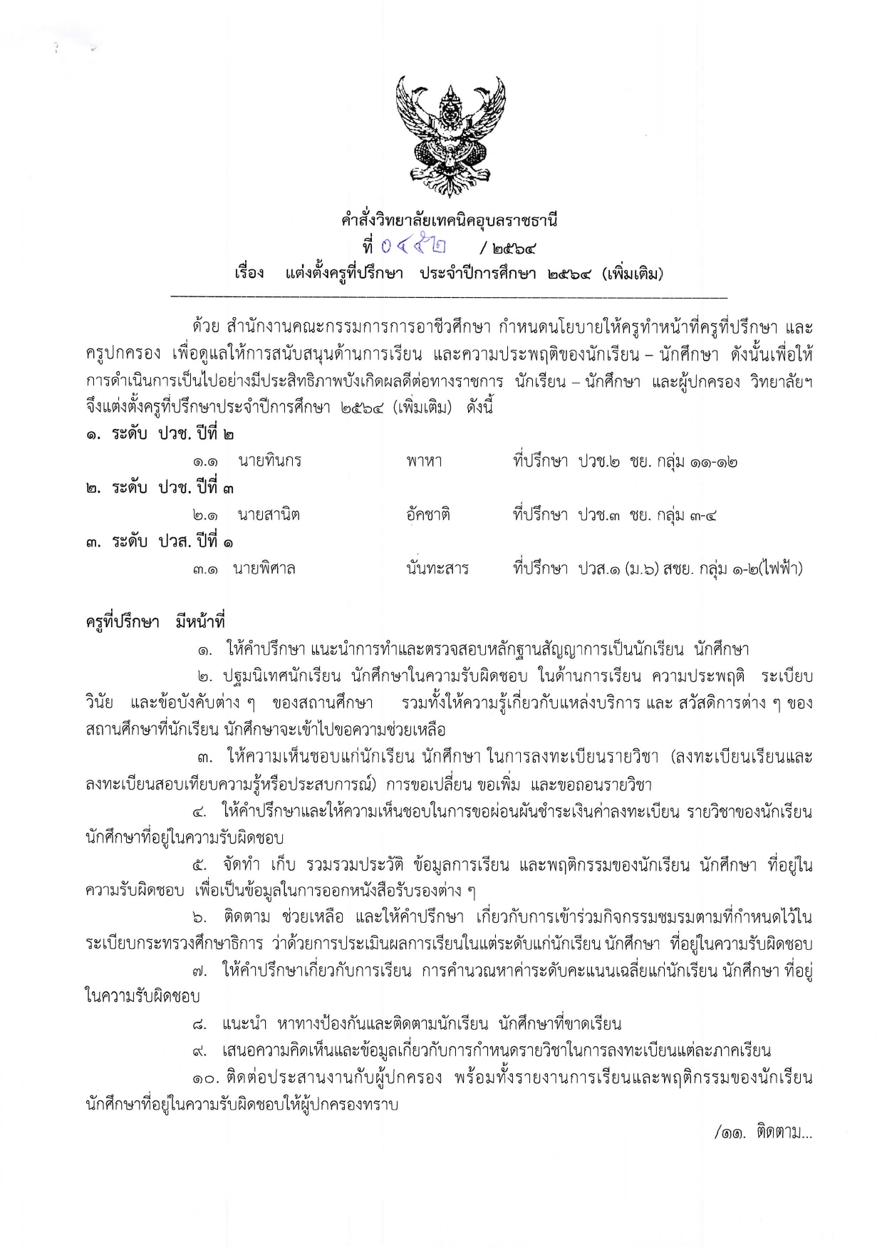 แต่งตั้งและมอบหมายหน้าที่ให้บุคลากรในสถานศึกษาปฏิบัติหน้าที่ราชการฯ ปีการศึกษา 2564