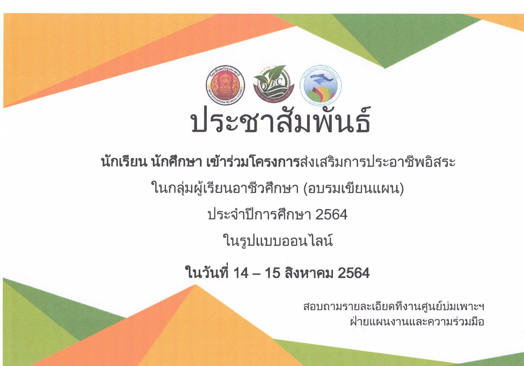 ประชาสัมพันธ์ นักเรียน นักศึกษา เข้าร่วมโครงการส่งเสริมการประชาสัมพันธ์อาชีพอิสระ