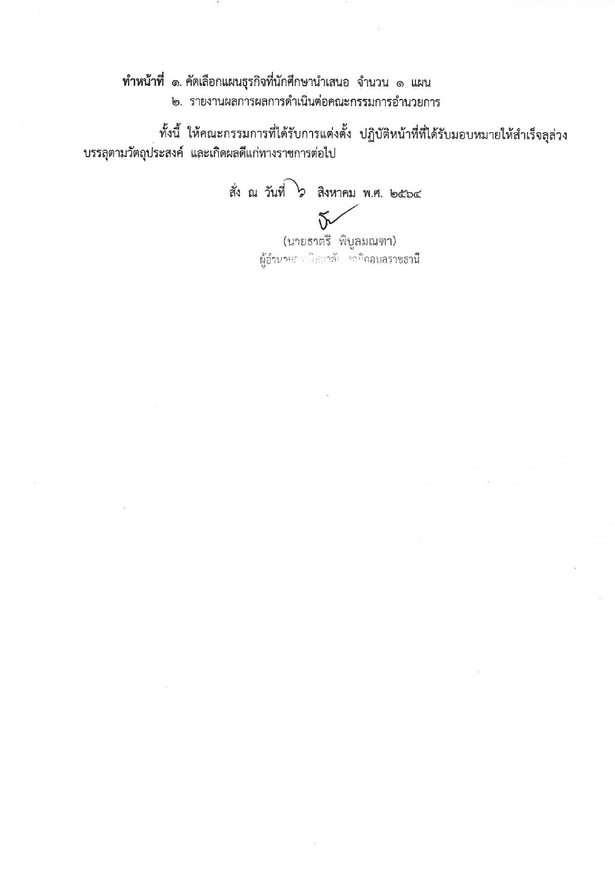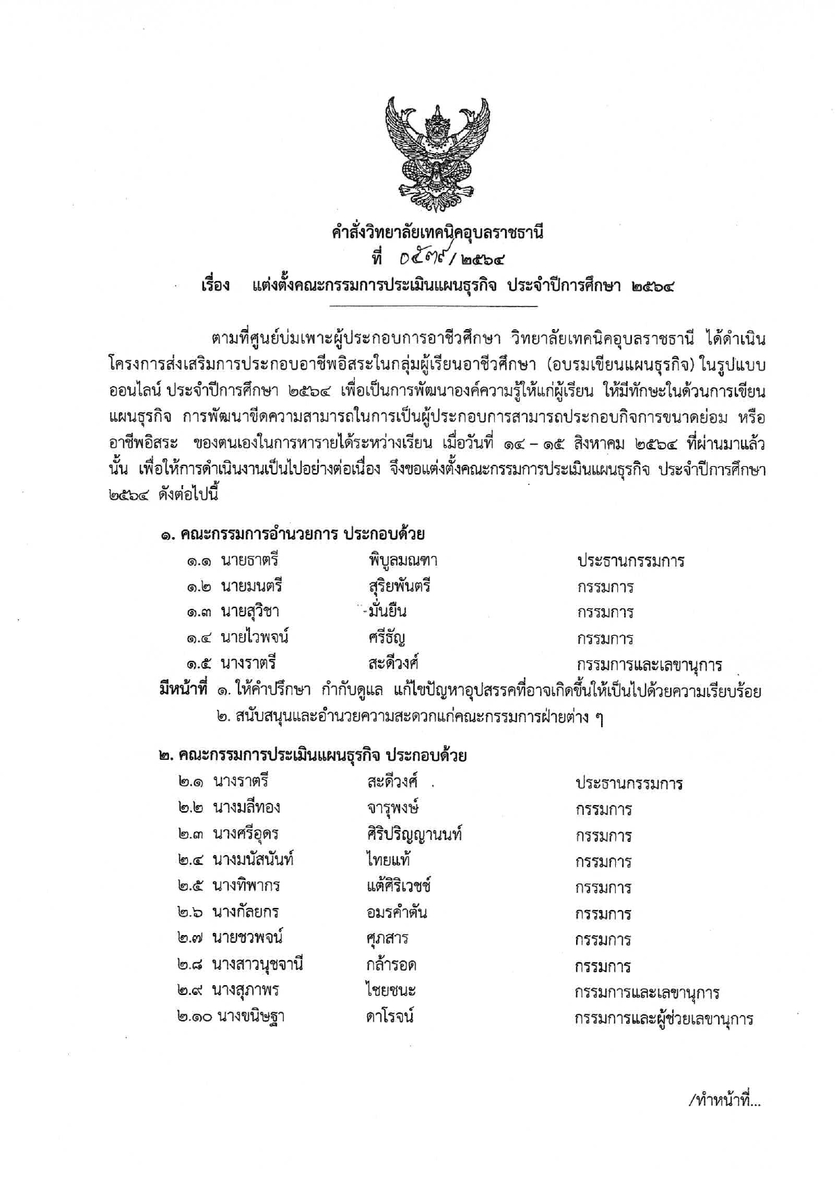 แต่งตั้งคณะกรรมการประเมินแผนธุรกิจ ประจำปีการศึกษา ๒๕๖๔