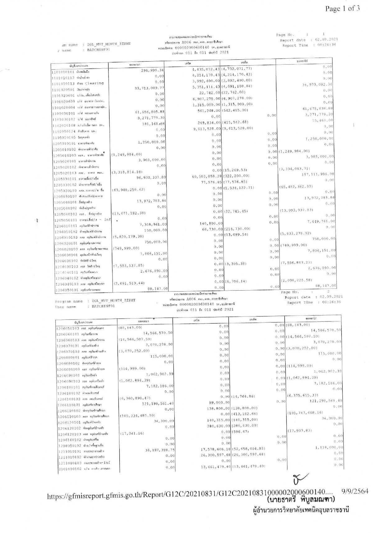 รายงานงบทดลองประจำเดือน สิงหาคม 2564
