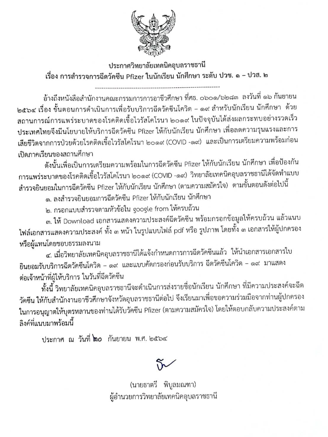 ประกาศวิทยาลัยเทคนิคอุบลราชธานี