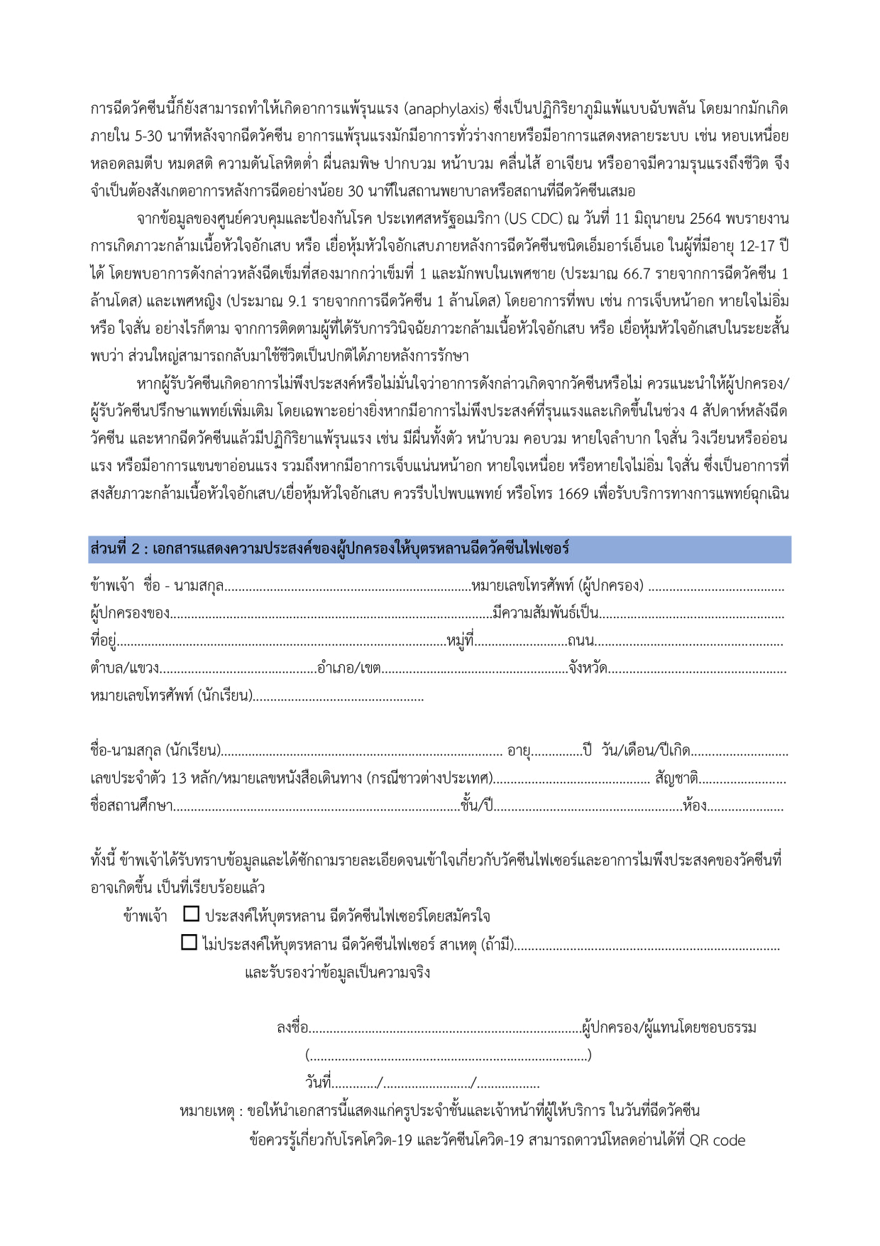 👉การจัดทำแบบสำรวจยินในการฉีดวัคซีน Pfizer