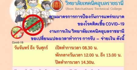FacebookTwitterLineประกาศจากงานการเงิน ตามมาตรการการป้องกันการแพร่รับาด ของโรคติดเชื้อ COVID-19 วิทยาลัยเทคนิคอุบลราชธานี (เพิ่มเติม…)