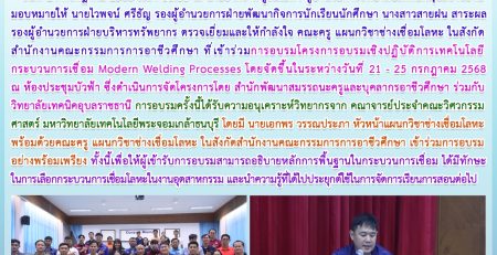 FacebookTwitterLineวันที่ 15 สิงหาคม 2568 ที่ผ่านมา นายธาตรี พิบูลมณฑา ผู้อำนวยการวิทยาลัยเทคนิคอุบลราชธานี ปฏิบัติหน้าที่ ผู้อำนวยการสำนักงานอาชีว (เพิ่มเติม…) FacebookTwitterLine read more