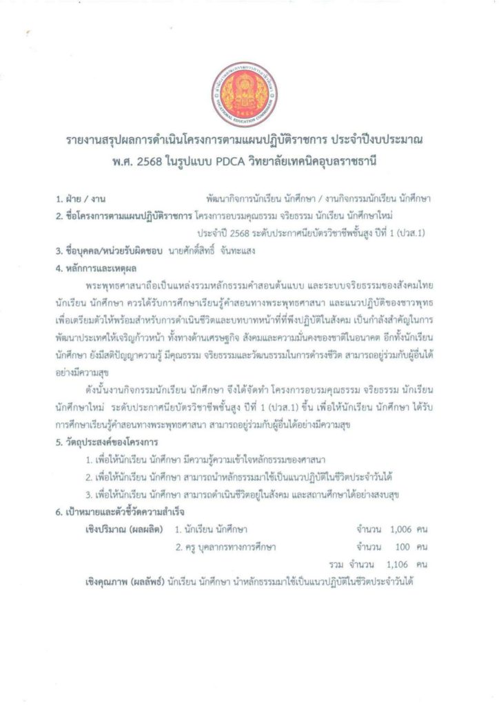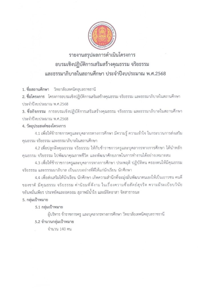 โครงการ/กิจกรรมที่เกี่ยวข้องกับการป้องกันการทุจริต 2568