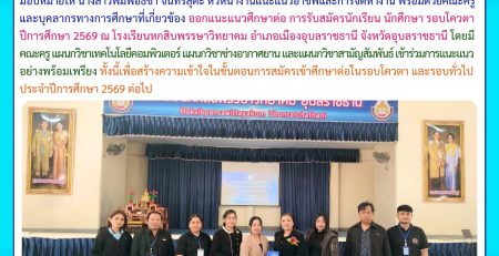- วท.อุบลฯ ออกเเนะเเนวศึกษาต่อ การรับสมัครนักเรียน นักศึกษา รอบโควตา ปีการศึกษา 2569 ณ โรงเรียนโคกสว่างคุ้มวิทยานุสรณ์