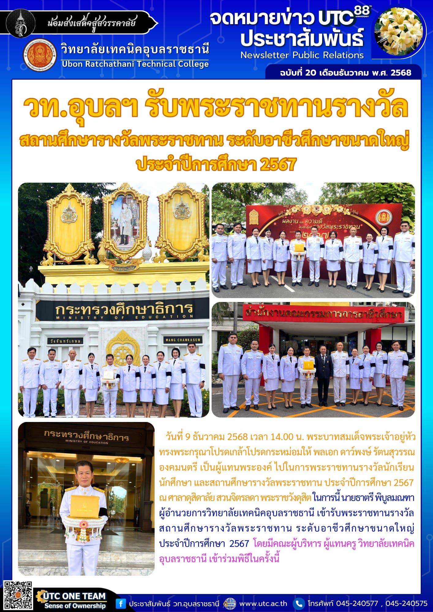 - วท.อุบลฯ รับพระราชทานรางวัลสถานศึกษารางวัลพระราชทาน ระดับอาชีวศึกษาขนาดใหญ่ ประจำปีการศึกษา 2567